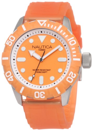 Br Slv Case, Orange Top Ring, Orange Dial, Date, Orange Silicone Strap, 44mm Case, sporty fun watch, easy to wear, colorful Quartz movement Durable mineral crystal protects watch from scratches 44 mm Stainless steel case Water resistant to 330 ft Nautica Men's N09604G South Beach Jelly NSR - 100 Watch Do not Miss!! Br Slv Case, Orange Top Ring, Orange Dial, Date, Orange Silicone Strap, 44mm Case, sporty fun watch, easy to wear, colorful Quartz movement Durable mineral crystal protects watch from scratches 44 mm Stainless steel case Water resistant to 330 ft ... Nautica Men's N09604G South Beach Jelly NSR - 100 Watch